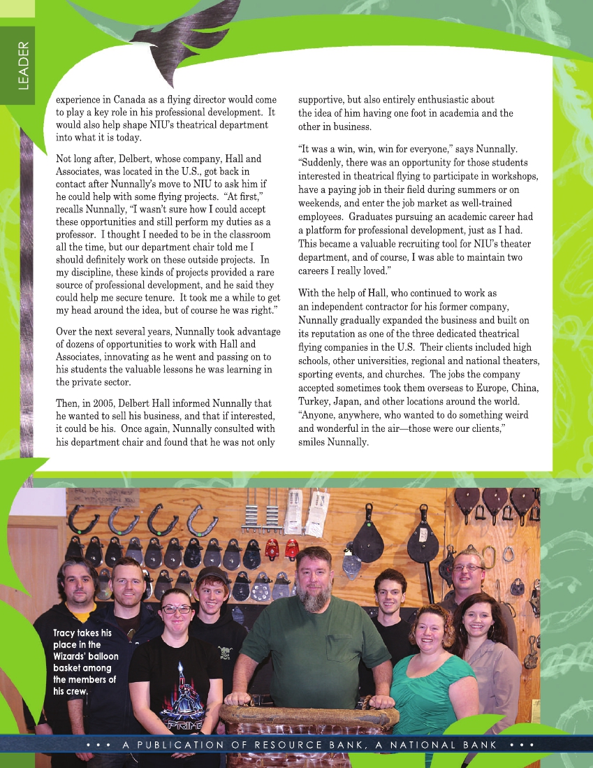 A great article on a local arts business featured in the most recent Resource Bank “Your Resource For Living” magazine. Vertigo (formally Hall Associates Flying FX) is one of many local businesses that are part of the local creative economy.